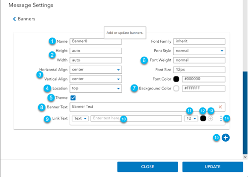 10 | Additional text that can appear on the banner. When the Link Text drop-down arrow is changed to Link, this becomes two text boxes. One is for text and the other for the destination URL. |