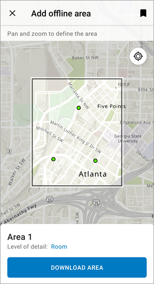 If the map is configured for offline use, you can define and download a map area by completing the following steps: