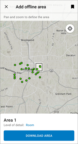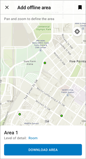 If you don't see the map area you want to download, you can define and download an offline area using the Overflow menu