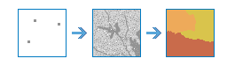 The source location raster is a multiband output. The first band contains a row index, and the second band contains a column index. These indexes identify the location of the source cell that is the least accumulated cost distance away. You can specify the name, or you can create an empty service using Portal Admin Sharing API and use the return JSON object as input to this parameter. Syntax: A JSON object describes the name of the output or the output raster. Output name example: Output raster examples: |
