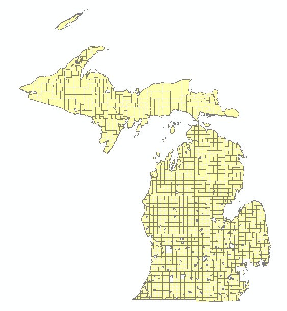 Description: This data set consists of polygons that represent the boundaries of townships. The aggregation of all Michigan township polygons provides 100% coverage of Michigan.